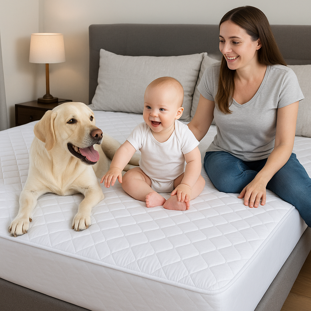 Sí. SafeDream Cover está fabricado con una capa impermeable de alta calidad que impide que líquidos, sudor, café, orina o cualquier derrame lleguen al colchón. Esto protege su inversión y mantiene la cama limpia incluso con el uso diario, niños o mascotas en casa.